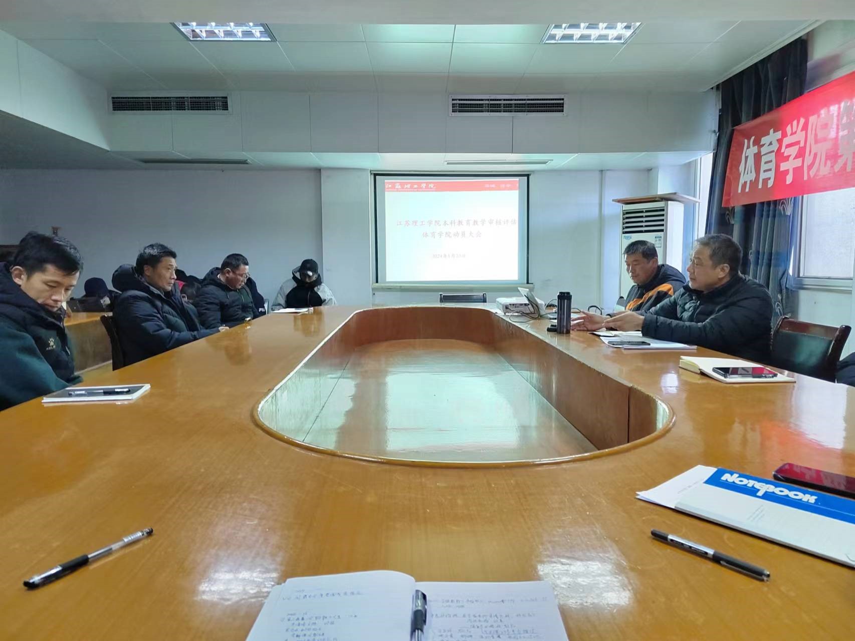 2024年下半年,我校将迎来江苏省本科教育教学审核评估工作,这将成为我校2024年的重点工作之一,是对我校本科教学质量的大检阅。为扎实推进、统筹配合、积极响应我校审核评估工作安排,体育学院在体育馆会议室召开了迎接本科教育教学审核评估动员大会。体育学院全体教职工参加了本次会议。