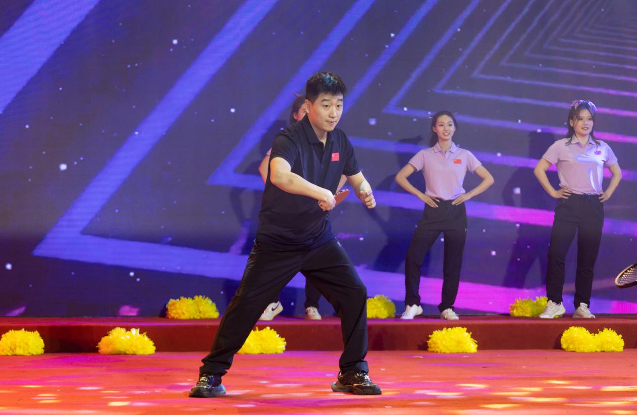 体育学院在第二篇章《五育并举 全面发展》中,为大家共同带来了一场精彩绝伦的表演《我们一起动起来》。节目由体育学院副院长张文贤担任艺术指导、李海峰老师组织、王馨老师负责训练,副院长司庆洛、支部书记杜峰、教研室主任刘营、刘江、聂晓梅等19位老师以及28位体育学院社体专业、啦啦操和舞龙舞狮运动队的同学近50位师生参加了演出。