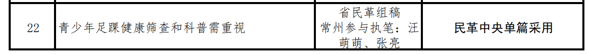 近日,从民革中央传来重要喜讯,我校体育学院民革党员汪萌萌老师撰写的《青少年足踝健康科普和筛查:守护成长每一步》成功获得民革中央单篇采用。这一成果不仅是汪萌萌老师深耕青少年健康领域、积极履行参政议政职责的重要体现,更彰显了体育学院教师立足专业服务社会、聚焦民生贡献智慧的责任担当,为学校民主党派成员履职实践再添亮眼成绩。