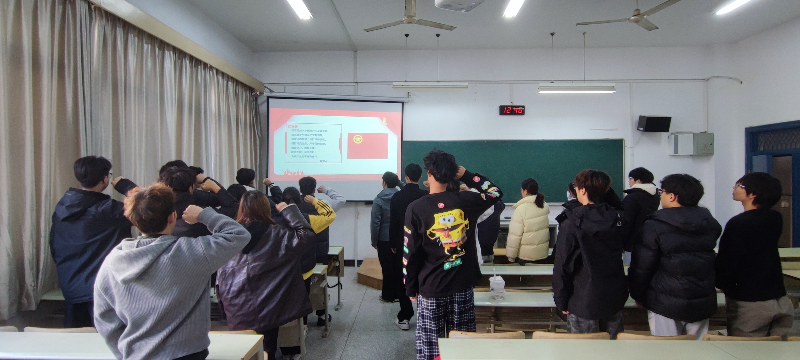 为加强青年思想政治引领,传承红色基因,激励青年学子奋发向上,体育学院团委12月9日中午举行2025年度新发展团员入团仪式,团委书记郝大兵、辅导员曹庆泽参加仪式
